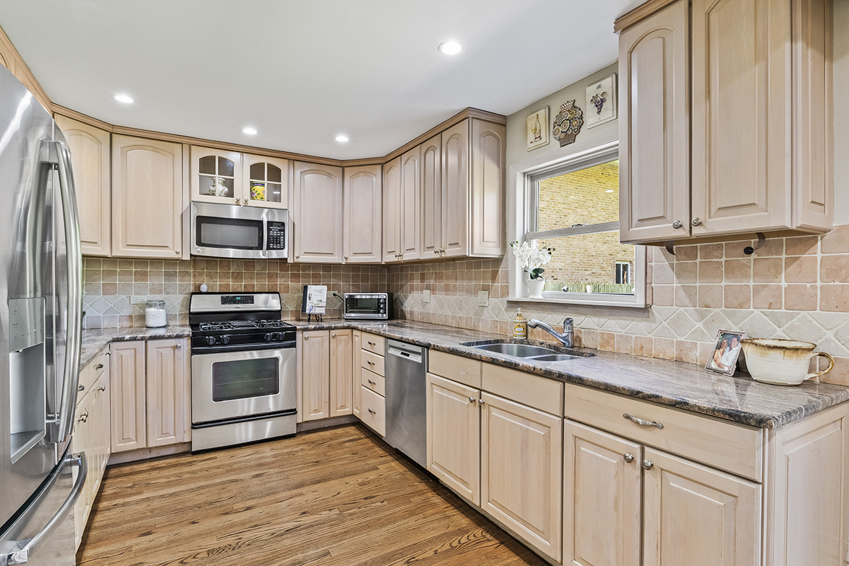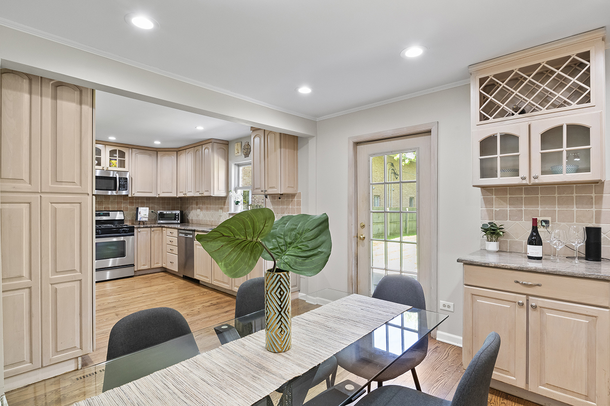 Wait....What?... Stop the car! Adorable and Affordable and IN-TOWN Red Brick Cape Cod. You will not want to miss this incredible opportunity to live in the hottest area of Glenview. This adorable, traditional red brick cape cod home features an updated kitchen with granite and stainless steel appliances, open concept living and dining room. Dining room has a built in bar area/cabinet with feature cabinetry and granite counter. Hardwood floors on 1st level, 3 bedrooms, 2 updated baths (1 with a whirlpool tub!), full basement with tons of storage and loads of updates! The home also offers a fully fenced HUGE yard with patio for outdoor living. ***All new since 2023: New Roof and Gutters, New HVAC, Refinished Hardwood Floors and Stairs, New Concrete Driveway Apron, New Hot Water Heater, freshly painted and 100% move-in ready***. Literally minutes to everything the amazing Village of Glenview has to offer....nationally ranked schools, parks, pool, golf, dining, shopping, tennis, Metra station and Pace Bus 2 blocks away! Welcome Home!