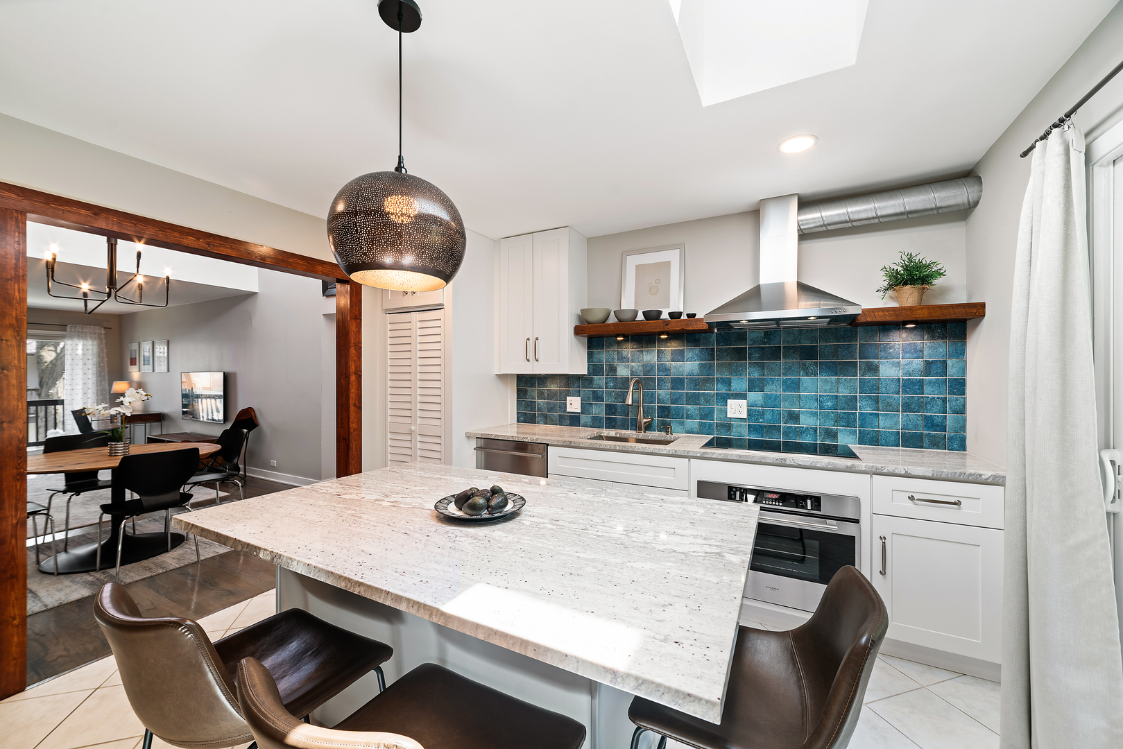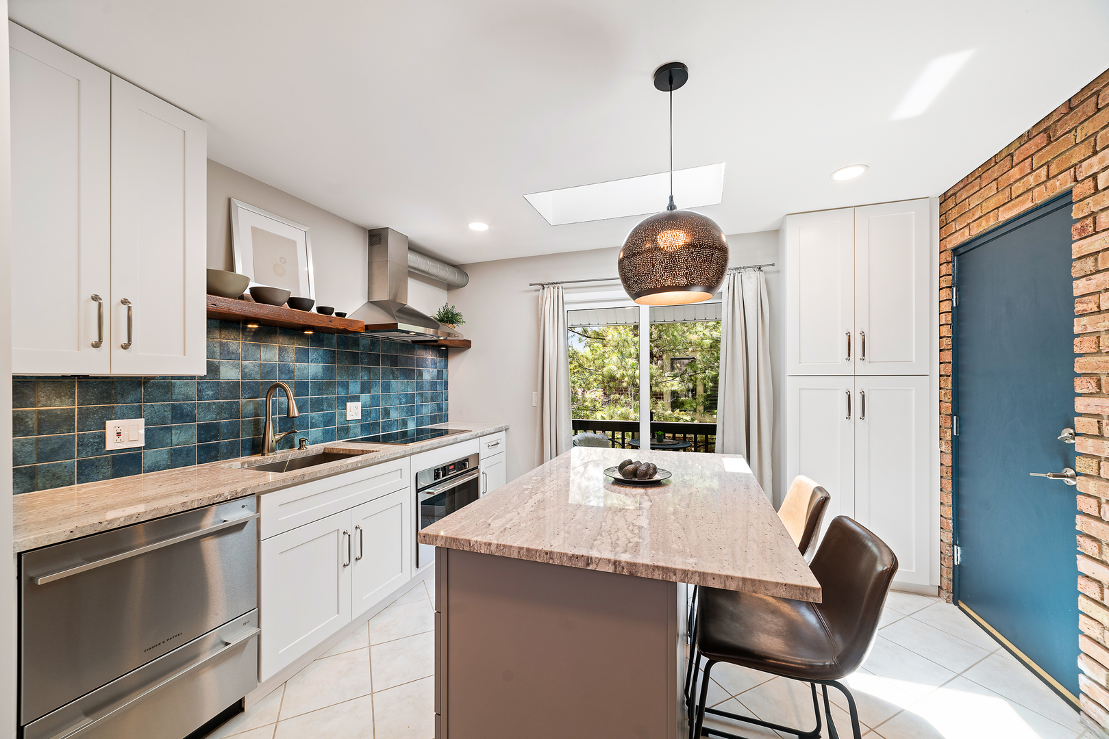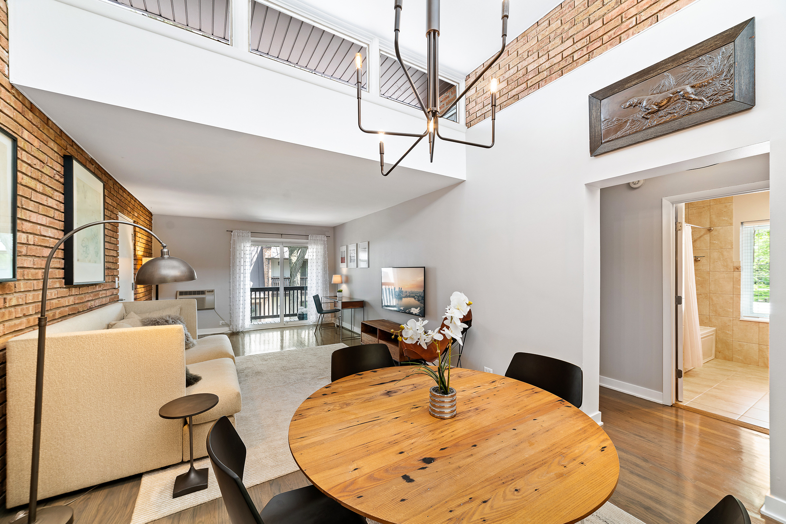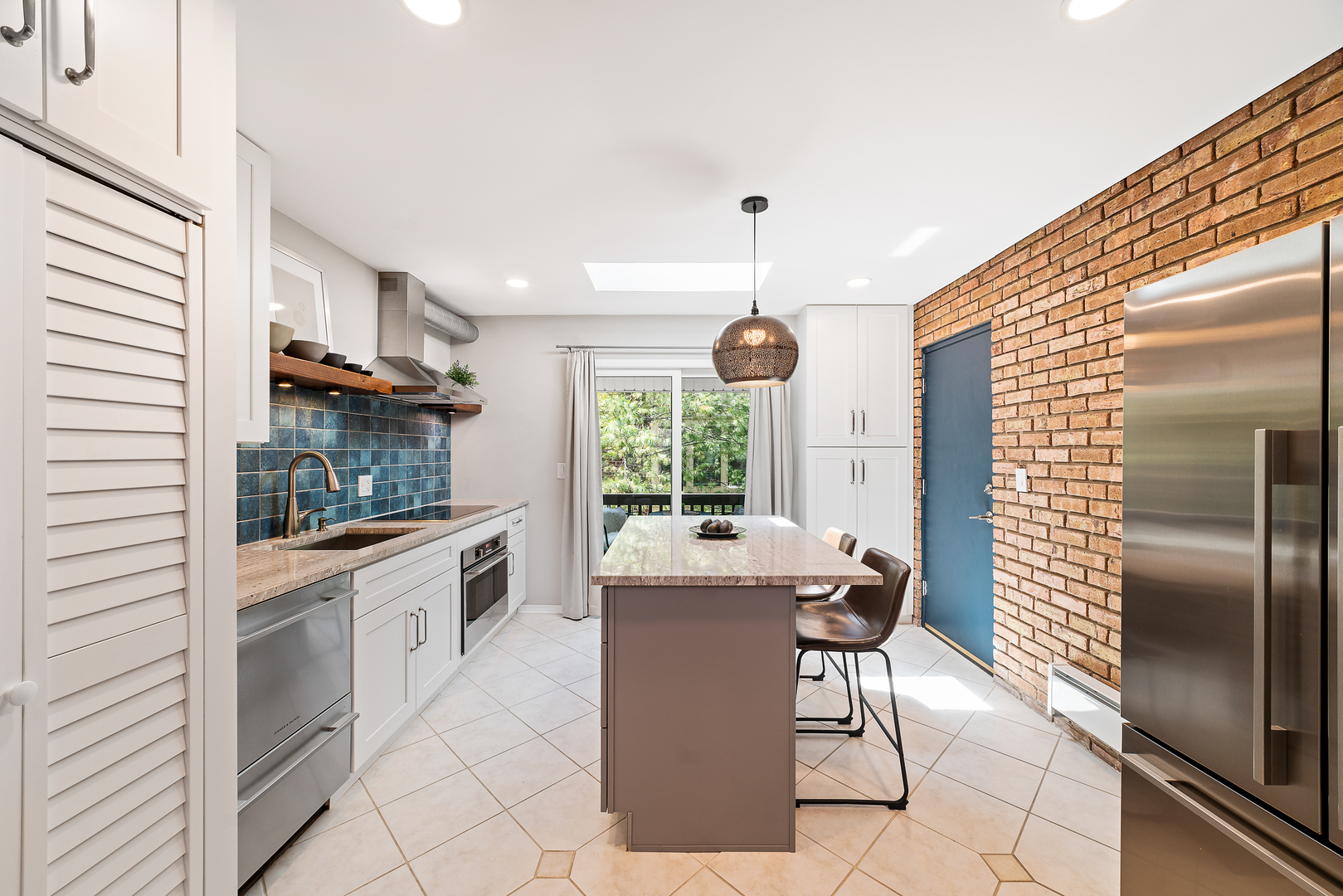 This artfully designed condo sits in the heart of Glenview, minutes to Metra, library, restaurants, supermarket, parks, shops and schools. Gorgeous and sunny 2-bedroom end-unit condo features open floor plan with vaulted ceilings, skylights, exposed brick, refinished hardwood floors and high-end cook's kitchen. Unit has great updates including Wolf cooktop, Fisher & Paykel appliances, Bosch washer/dryer, and granite countertops. This unit stands out with 2 separate balconies and a private one car garage with new epoxy floor. High quality finishes create a great home in a small intimate complex with guest parking on site. This is hands down one of the most beautiful properties available in downtown Glenview.