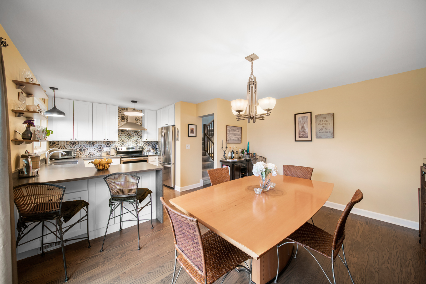 STOP THE CAR! Incredible Location! Great Space! What EVERY downtown Glenview buyer has been waiting for...Updated 3BR, 2.5BA Townhome with attached 2 Car Garage. Walk to EVERYTHING location. ***Gorgeous NEW Kitchen (2019), ***Gleaming HW floors throughout first level, ***New Powder Room (2023), ***New Patio Sliders and Rear Windows (2021), ***New Sump Pump (2018). Primary Bedroom with en-suite bath and 2 huge closets. 2 additional bedrooms with ample closets and hall bath finish the upstairs. Over-sized attached, 2-car garage goes directly into the laundry/mud room. Both the garage and laundry/mud room offer loads of storage. Amazing open patio space to enjoy all the seasons, too! Currently, the owner has the dining area set up next to the kitchen; however, many owners have a Fam Room set up here while the Dining Room is combined with the Living Room. With this location, you are close to everything Glenview...Metra and Amtrak trains, parks, pool, library, dining, schools! Only a 5 minute drive to The Glen! Small, self-managed community keeps the monthly assessments very low! WELCOME HOME!